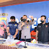 Kapolres Dumai AKBP Mohammad Kholid, S.I.K didampingi Wakapolres Dumai Kompol Sanny Handityo, S.H, S.I.K, Kasat Reskrim Polres Dumai AKP Aris Gunadi, S.I.K, M.H, Kapolsek Bukit Kapur AKP Hotman Silalahi, S.H, Kasubsi PIDM Si Humas Polres Dumai IPTU Zaini Waluyo dan Kanit I Pidum Sat Reskrim Polres Dumai IPDA Hendra D. M. Hutagaol, S.H dalam pelaksanaan Press Conference, Jumat (25/03/2022) siang, membenarkan adanya penangkapan diduga Tersangka Kasus Tindak Pidana Menghilangkan Nyawa Orang Lain (Pembunuhan) Ramadhon Nasution (19).